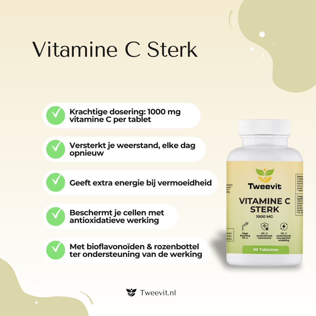 Vitamine C 1000 mg is veilig voor dagelijks, langdurig gebruik. Zeker in periodes van verminderde weerstand, stress of vermoeidheid is het slim om extra te ondersteunen. Onze dosering is afgestemd op veilig gebruik volgens de richtlijnen.