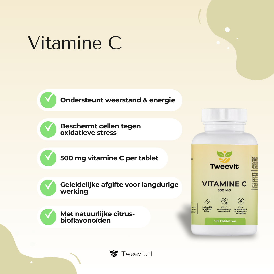 Vitamine C ondersteunt je immuunsysteem, helpt je lichaam bij het beschermen van cellen tegen oxidatieve stress en draagt bij aan de normale werking van je zenuwstelsel en energiehuishouding. Ook bevordert het de opname van ijzer uit voeding.